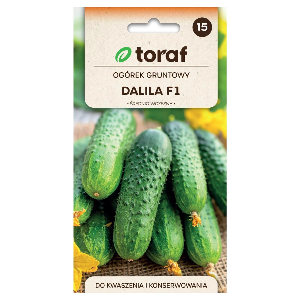 Ogórek Dalila F1 Toraf Cucumis Sativus L. to średnio wczesna odmiana gruntowa, o jasnozielonych, cylindrycznych owocach grubo-brodawkowych z czarnymi kolcami, bez goryczki. Roślina jest odporna na wirusy i tolerancyjna na mączniaka rzekomego, co zapewnia stabilne plony. Idealna do spożycia na surowo, kwaszenia, sałatek i przetworów, sprawdza się również w chłodniejszych rejonach.