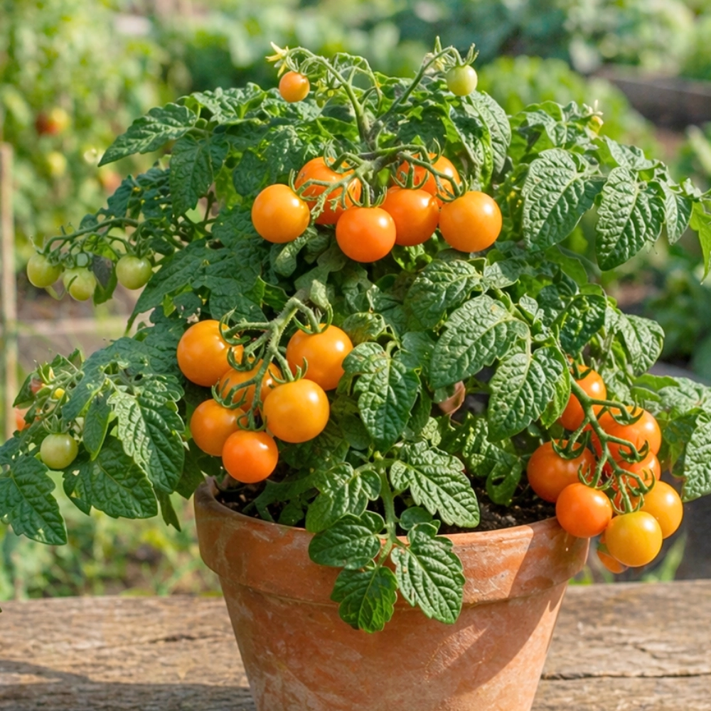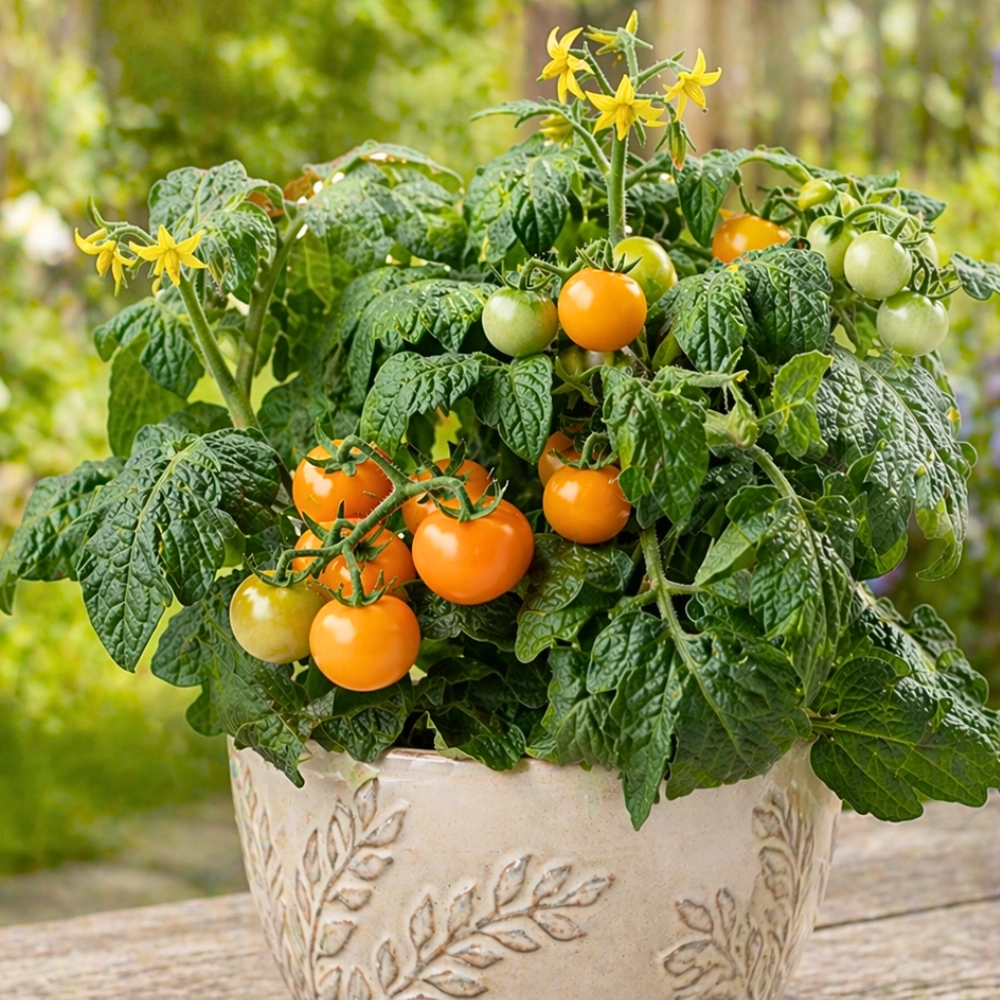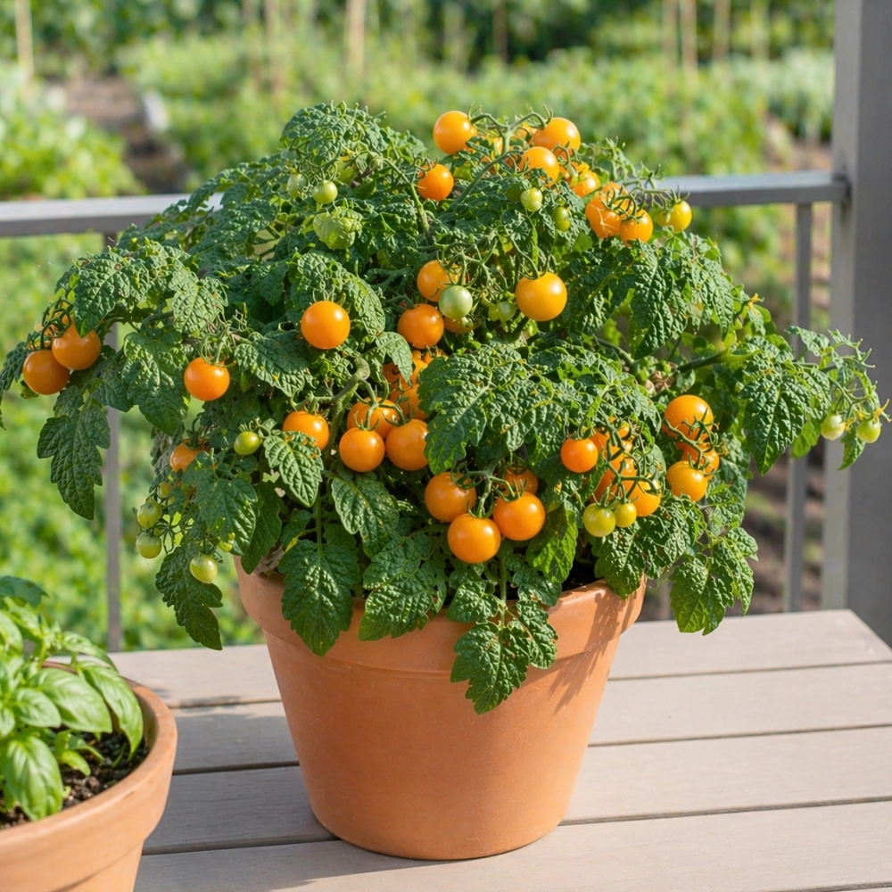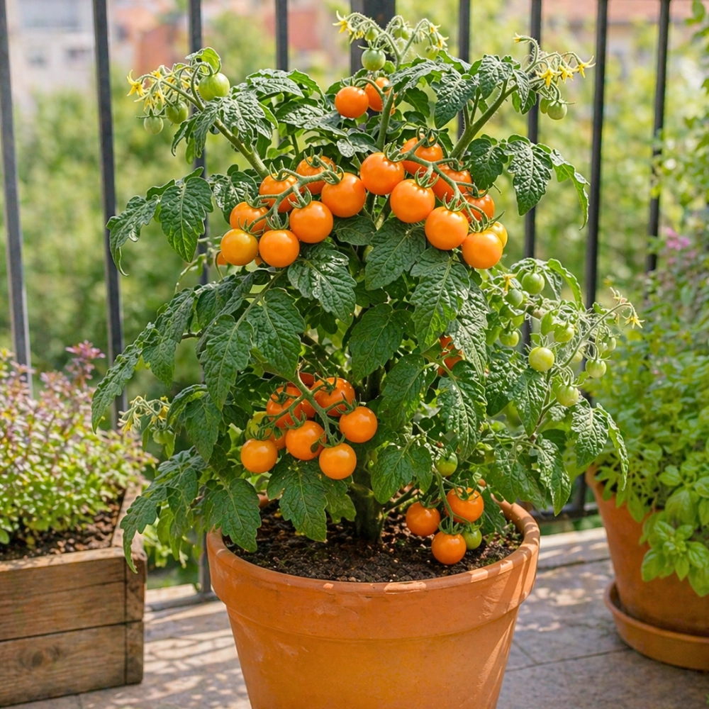 Pomidor Venus to kompaktowy pomidor koktajlowy, który doskonale sprawdza się w uprawie balkonowej i pojemnikowej. Niewielkie rośliny o krzaczastym pokroju tworzą liczne, pomarańczowe owoce o słodkim, intensywnym smaku. Dzięki samokończącemu charakterowi nie wymagają podpór, co znacznie ułatwia pielęgnację. Pomidor Venus owocuje długo i obficie, dostarczając świeżych pomidorów przez całe lato i wczesną jesień. To idealne rozwiązanie dla osób, które chcą cieszyć się własnymi warzywami nawet na niewielkim balkonie lub tarasie.
