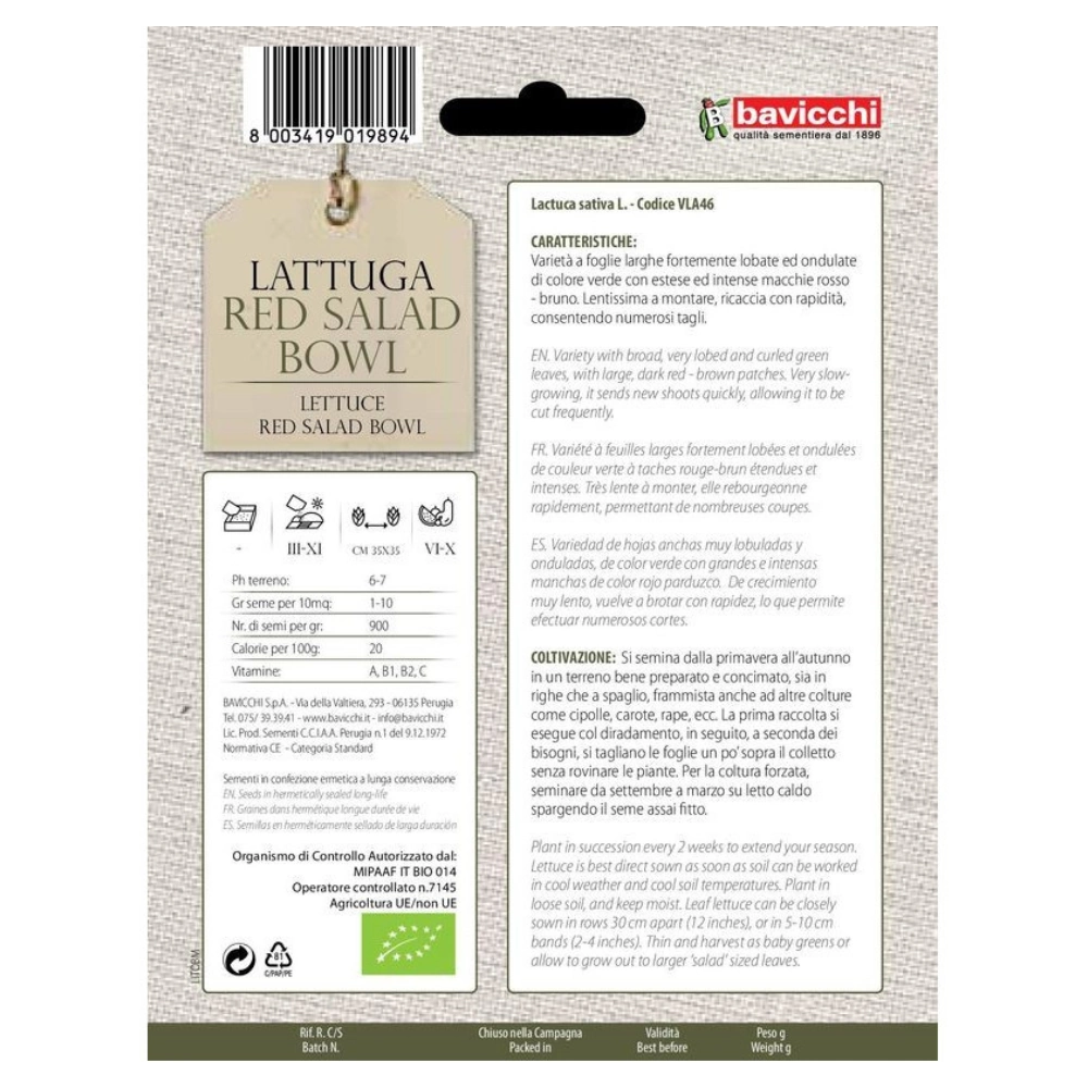 Sałata liściowa Red Salad Bowl nasiona włoskie ekologiczne 1,5g - Bavicchi